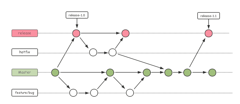 - master:最终发布分支。如果使用了 master 作为日常开发分支,那么这个分支名应该是 production。