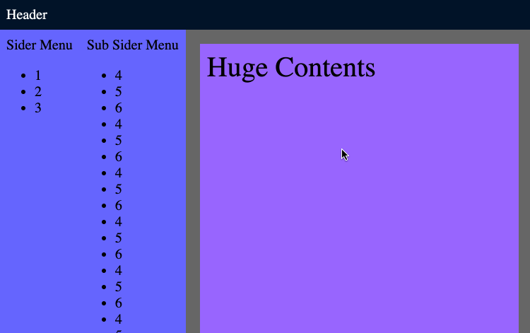 最近实现了一个需求,一个页面,需要固定的 header,固定的左侧栏,右侧的内容部分又有一个左侧栏,这个左侧栏也需要固定,其余的内容是正常展示,超出的部分显示滚动条。左侧栏虽然是固定的,但如果内容超出页面高度,也显示滚动条。