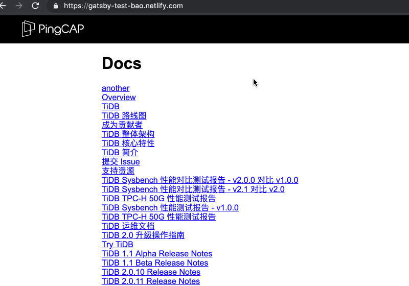 gatsby 相比其它静态站点生成器 (Jekyll / Hugo ...) 有一个很特别的地方,它能实现站内页面间无刷新的跳转。当然,前提在代码中使用的 Link 组件作为链接。比如:
